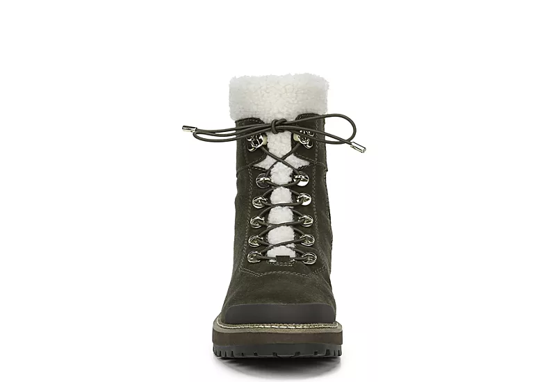 Waterproof your winter style with the Franco Sarto Rosella women’s combat boot. Featuring a faux suede & faux leather upper with a faux fur trim for extra warmth, this inside zip bootie also has a stylish hiker-inspired lace-up front.The unique eyelets set their own trend while lug outsole offers deep traction.