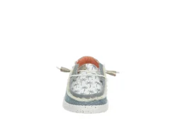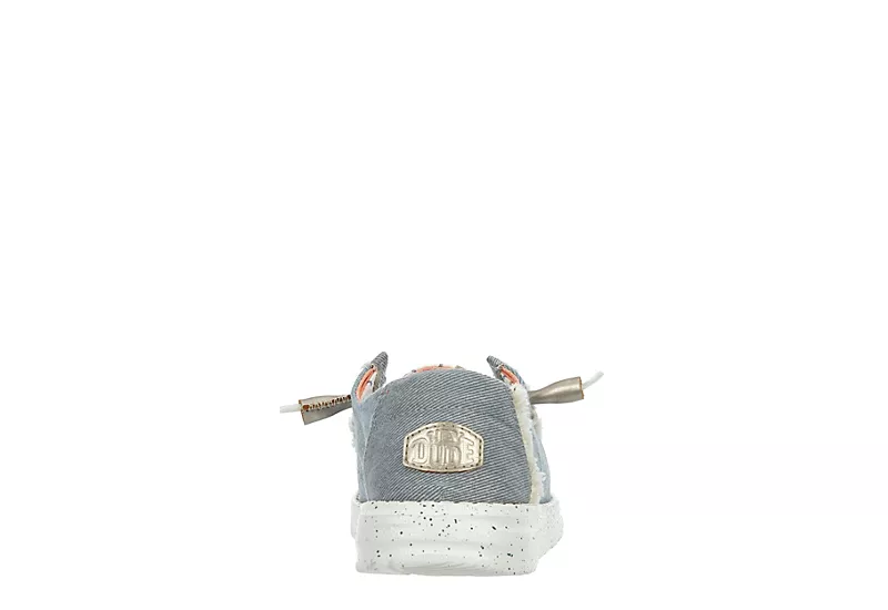 Relax into your passion with the HEYDUDE Wendy Tropical women’s slip-on sneaker. With a chambray-blend upper featuring contrast stitching & details for extra style, this sneaker is machine washable for easy maintenance. The removable Memory Foam insole & textile lining offer ergonomic support and cushioning while the ultralight outsole sets you free to explore unfettered.