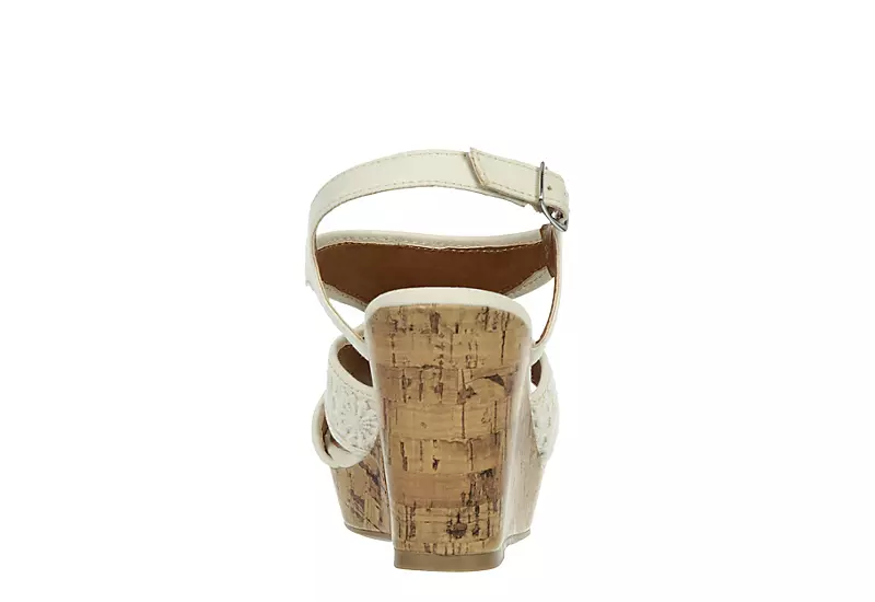 Add something special to your everyday style in the Jellypop Lisbon women’s wedge sandal. With a fabric upper featuring a feminine lace overlay for extra flair, this buckle strap sandal is an elegant additon to your wardrobe that easily goes with your vibe. The cushioned insole comforts every step while the cork wedge heel adds significant lift that’s stable and appealing.