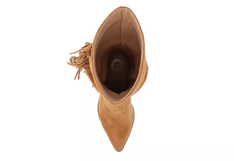 Journee Collection Womens Hartly Fringed Wide Calf Dress Boot – Tan