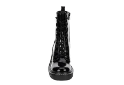 Take your look to the next level with the Lion women’s lace-up boot by Madden Girl. This fashionable combat-style boot features a faux leather upper with a lace-up front, an inside zipper, and a heel pull tab for a secure, comfortable fit. A padded insole cushions your feet, while the chunky 3½” block heel adds a dramatic lift, and the durable lugged outsole provides excellent traction and stability.