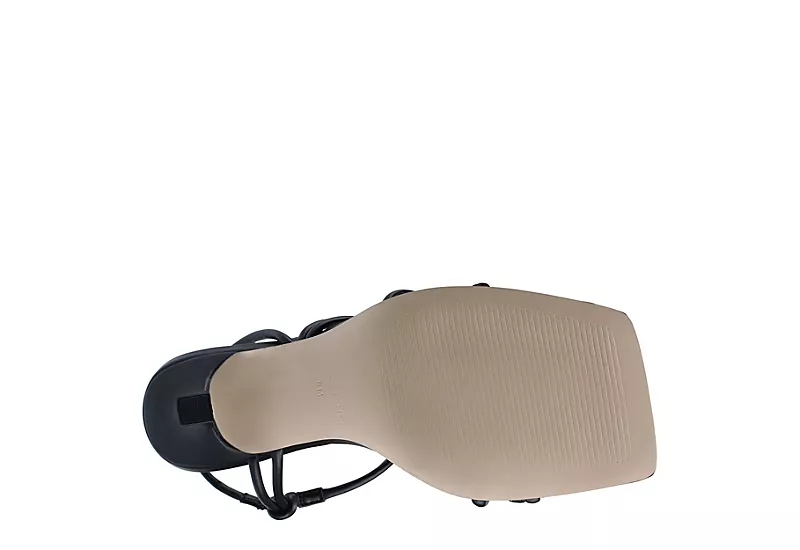 Hit the town looking cute and trendy in the Marc Fisher Dareta women’s sandal. With a faux leather or patent leather upper featuring a skinny, tubular staps for extra flair, this pull-on sandal also has a square toe for a chic finish. The lightly padded insole soothes your foot while the 3 1/2″ stiletto heel elevates you to stunning effect.